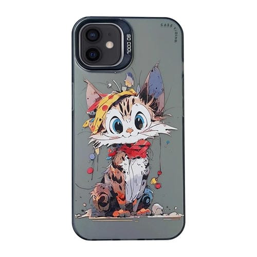 Funda para teléfono iPhone 12 Cartoon Animal Graffiti PC y TPU (Gato Calico)