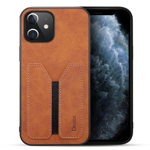 Funda para teléfono Denior iPhone 12 con ranura para tarjeta elástica PU + TPU (Marrón)