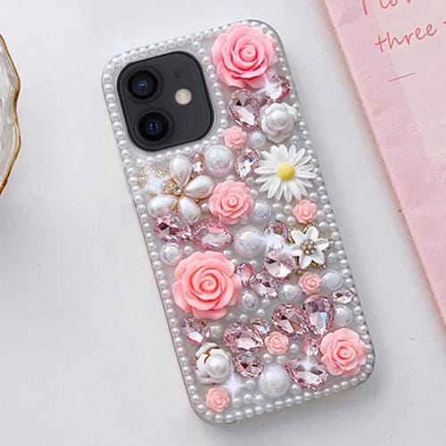 Estuche para Teléfono iPhone 12 con PC con Diamantes Engastados a Mano (Rosa)