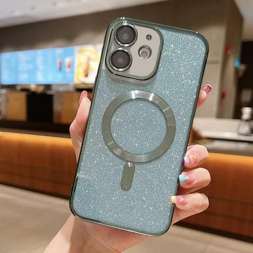 Funda para teléfono TPU iPhone 12 con Galvanoplastia y Purpurina Magsafe (Verde)