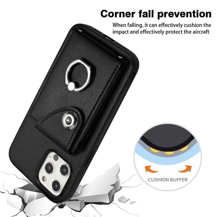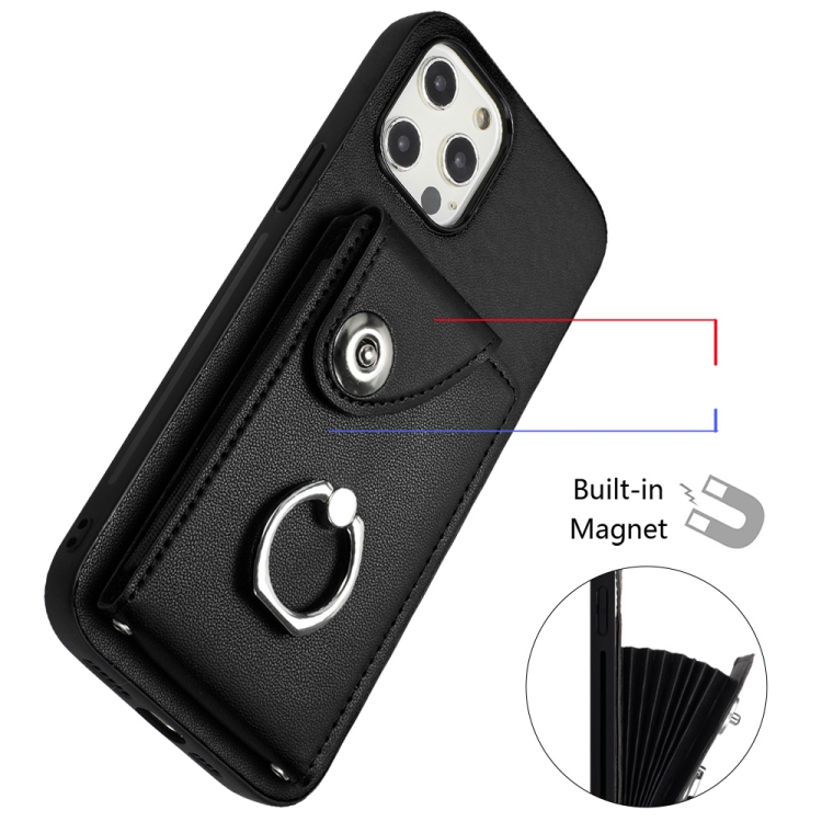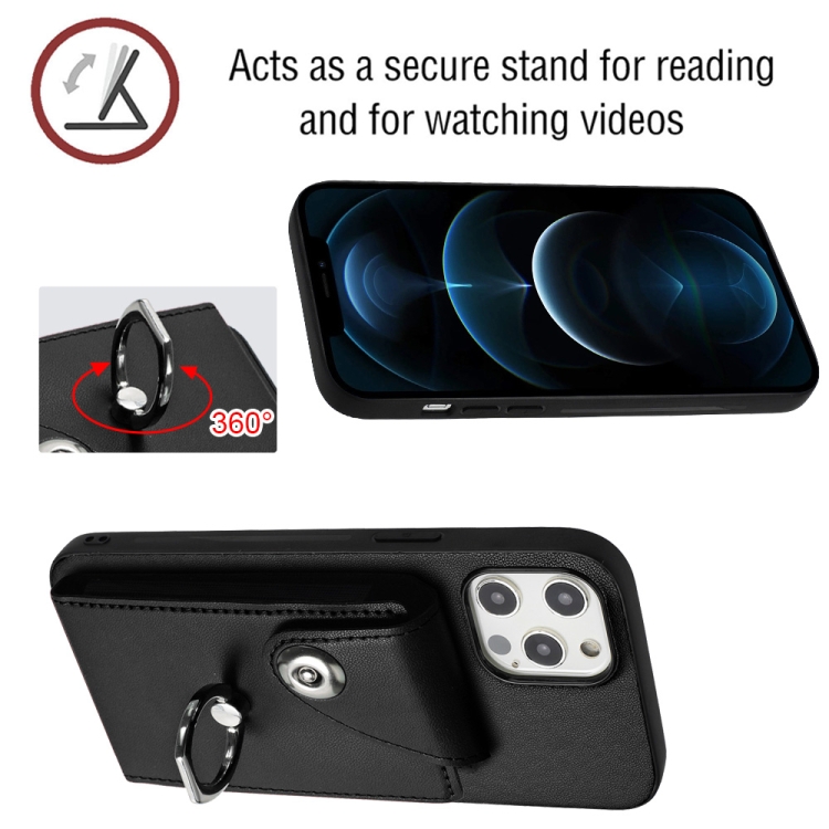 Funda para teléfono iPhone 12 Mini con soporte para anillo y bolsa para tarjeta (Negro)