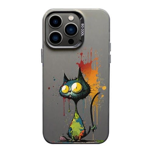 Funda para iPhone 12 Pro Color Ink Frosted PC + Estuche TPU Gato de Ojos Grandes
