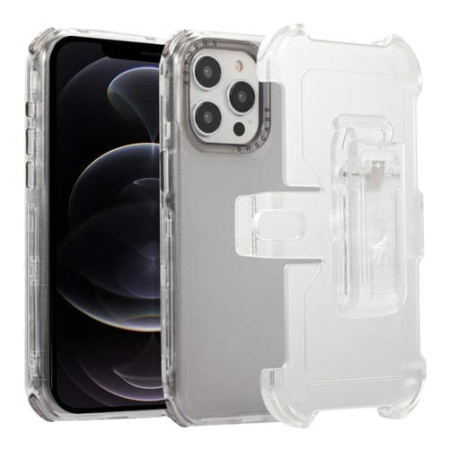 Funda para iPhone 12 Pro Frosted PC + Estuche TPU con Clip Trasero (Negro Transparente)