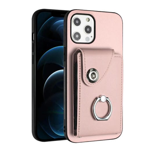 Funda para teléfono iPhone 12 Pro con soporte para anillo y bolsa para tarjeta (Rosa)