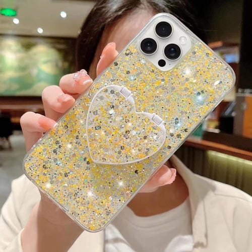 Funda para Teléfono TPU Epoxi iPhone 12 Pro Soporte Espejo Lentejuelas Estrelladas (Amarillo)