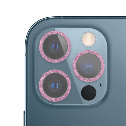 Película de Lente de Cámara de Vidrio Templado para iPhone 12 Pro Glitter Ring (Rosa)