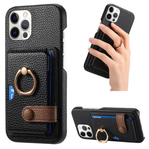 Funda para Teléfono iPhone 12 Pro Litchi Leather Oil Edge Ring Card Back (Negro)
