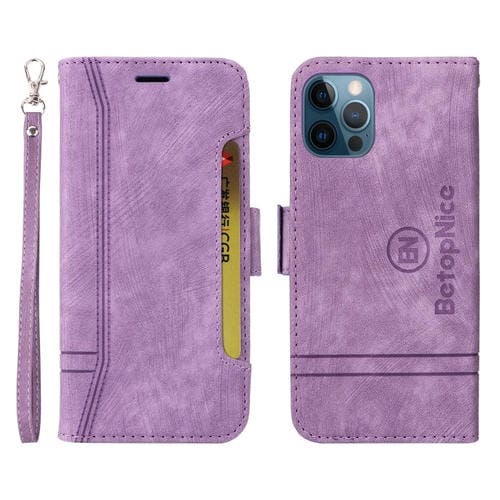 Estuche de Cuero Betopnice para iPhone 12 Pro Max con Hebilla de Doble Cara (Púrpura)