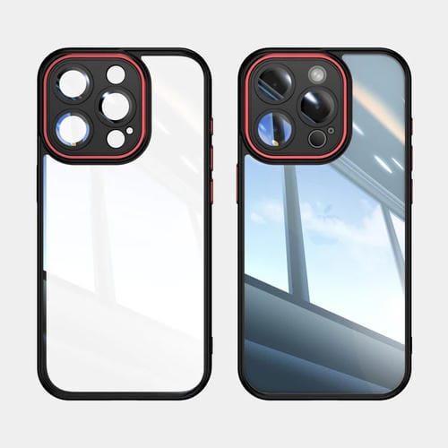 Caja de teléfono para iPhone 12 Pro Max con armadura de TPU híbrida acrílica a prueba de golpes (Negro Rojo)