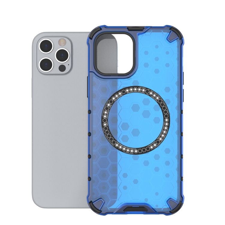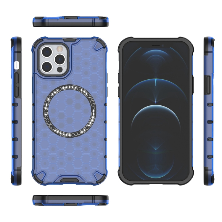 Funda para iPhone 12 Pro Max Honeycomb Magnetic Ring a Prueba de Golpes (Azul)