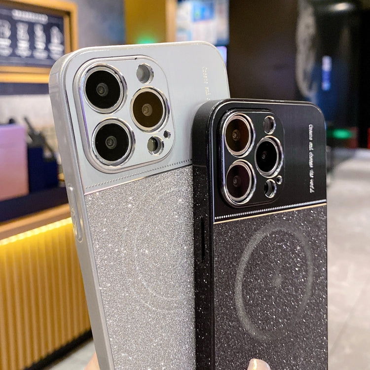 Caja de Teléfono para iPhone 12 Pro Max Magsafe a Prueba de Golpes con Polvo de Brillo Metálico Magnético (Púrpura)