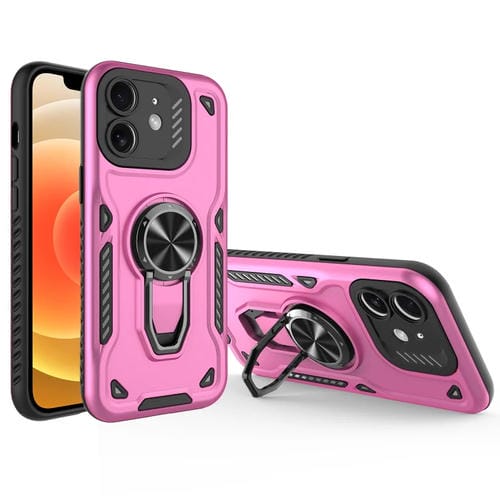 Soporte Giratorio de Metal TPU + PC Funda Magnética para iPhone 12 (Rosa Púrpura)