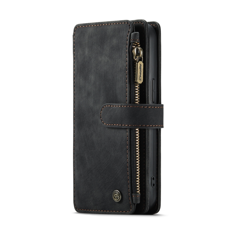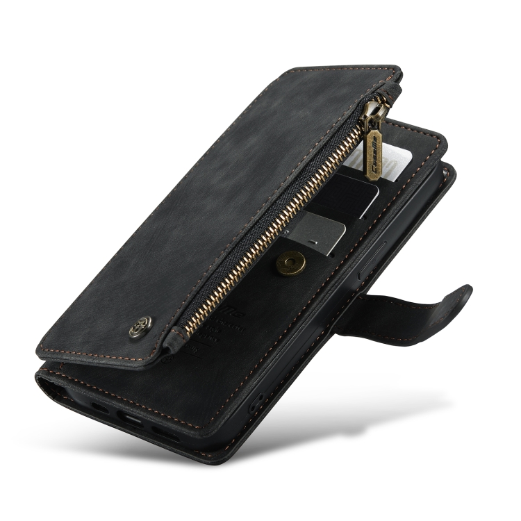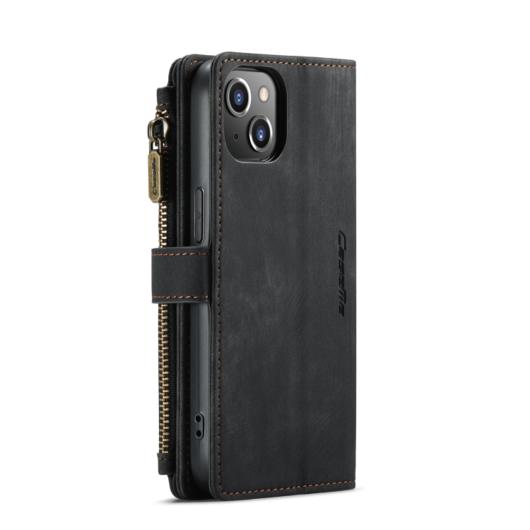 Estuche para iPhone 13 Caseme-C30 PU + TPU Cuero con Tapa Horizontal Multifuncional Soporte Ranura Tarjeta Billetera Bolsillo Cremallera (Negro)