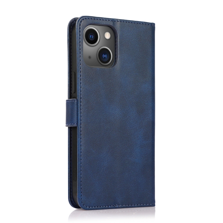 Funda para iPhone 13 Mini Calf Texture 2 en 1 Cubierta Trasera Magnética Desmontable con Tapa Horizontal y Ranuras (Azul)
