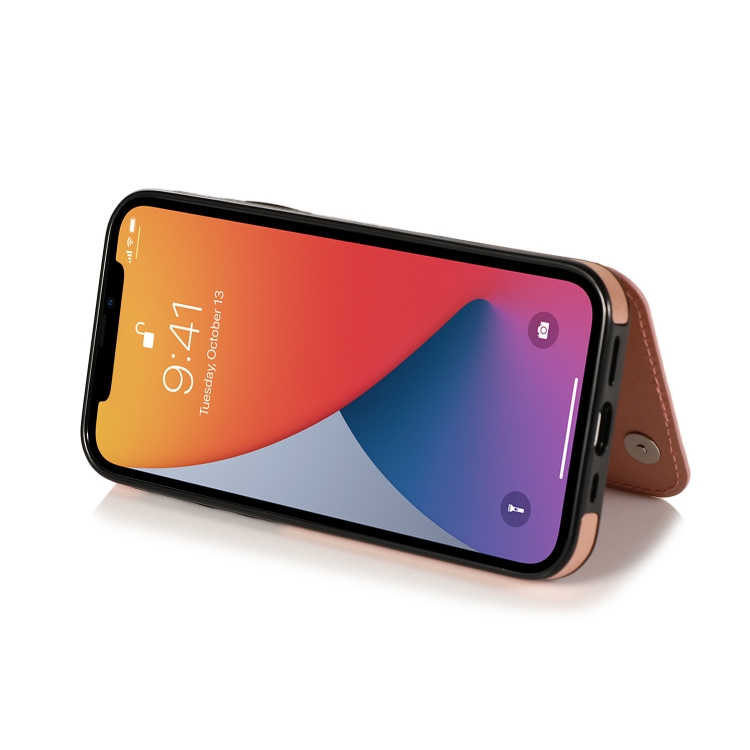 Funda Protectora iPhone 13 Mini Doble Hebilla Patrón Mandala PU + TPU Ranuras Tarjetas Soporte Marco Fotos (Oro Rosa)