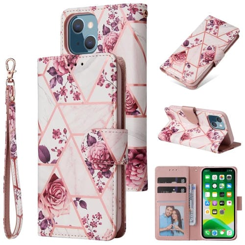 Funda para iPhone 13 Mini Cuero de PU con Tapa Horizontal Soporte Ranuras Tarjetas Billetera Marco Fotos (Oro Rosa)