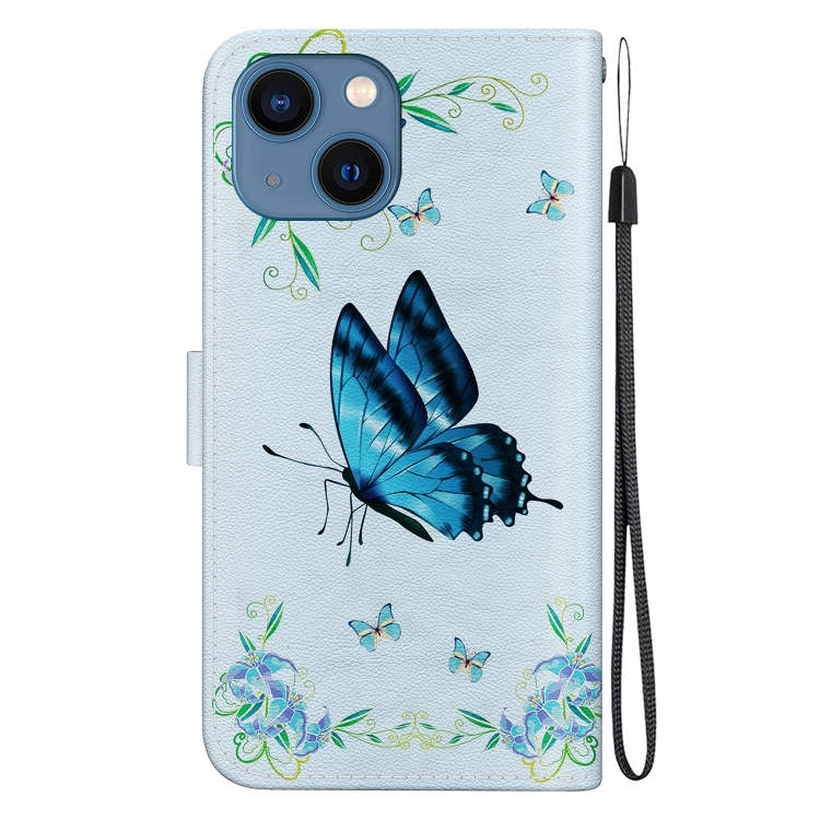 For iPhone 13 mini Leather Phone Case Colored Drawing Crystal Texture (Blue Pansies)