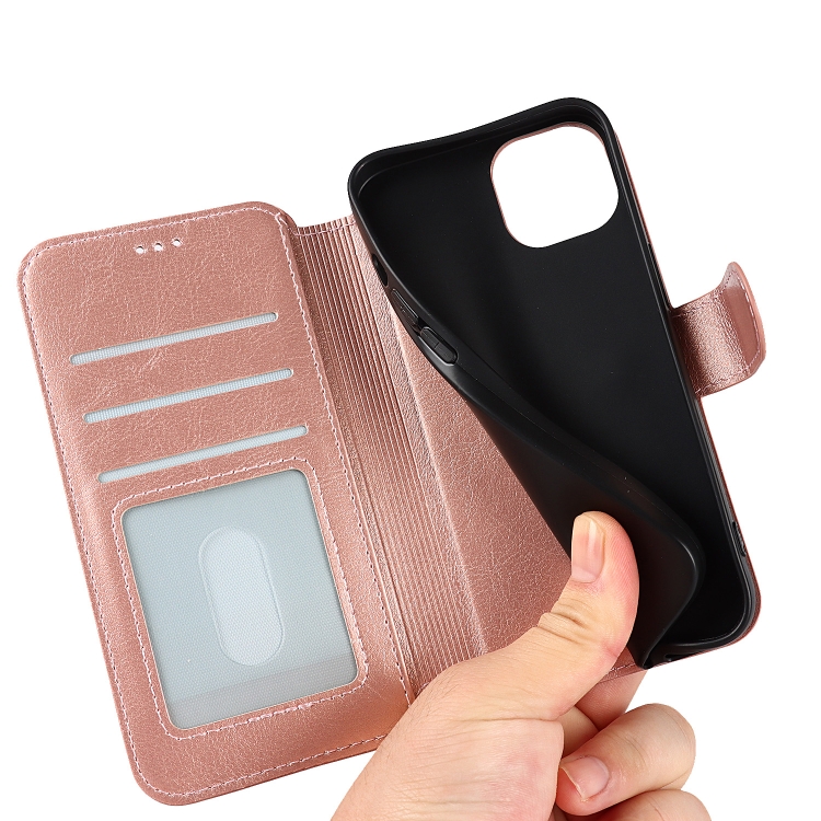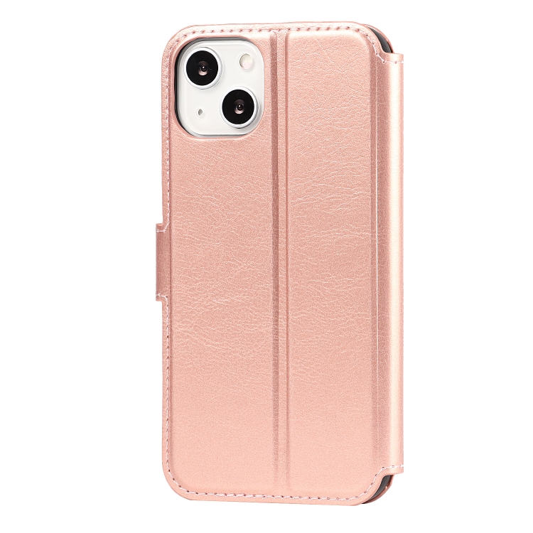 Funda para iPhone 13 Mini Cuero Pu + TPU a Prueba de Golpes con Ranuras para Tarjetas y Soporte (Oro Rosa)