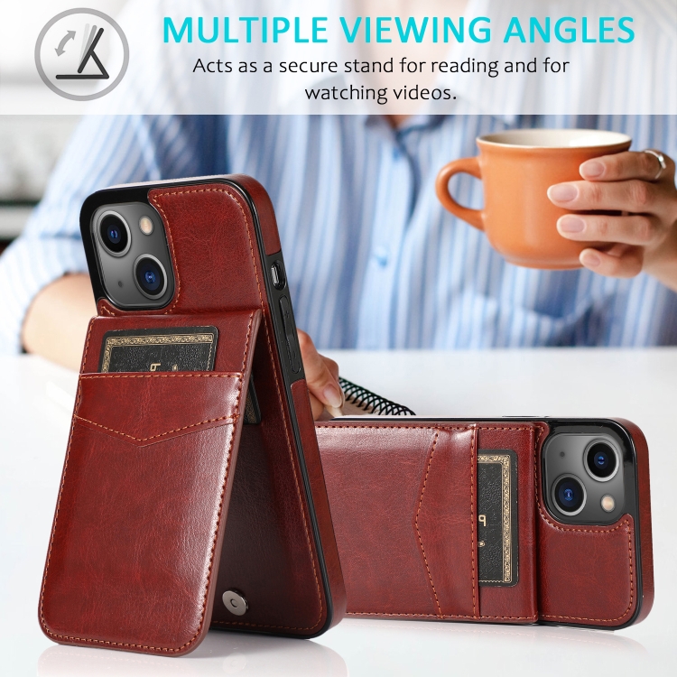 Funda Protectora para iPhone 13 Mini PC + TPU con Soporte y Ranuras para Tarjetas (Marrón)