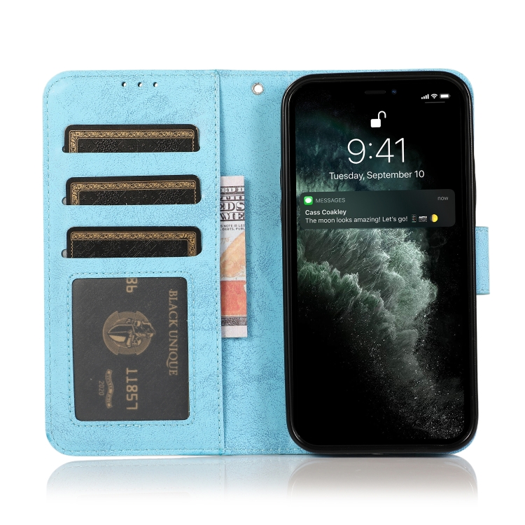 Funda para iPhone 13 Mini Retro 2 en 1 Cuero TPU + PU con Tapa Horizontal Magnética Desmontable Soporte Ranuras Tarjetas Marco Fotos Billetera (Azul Cielo)