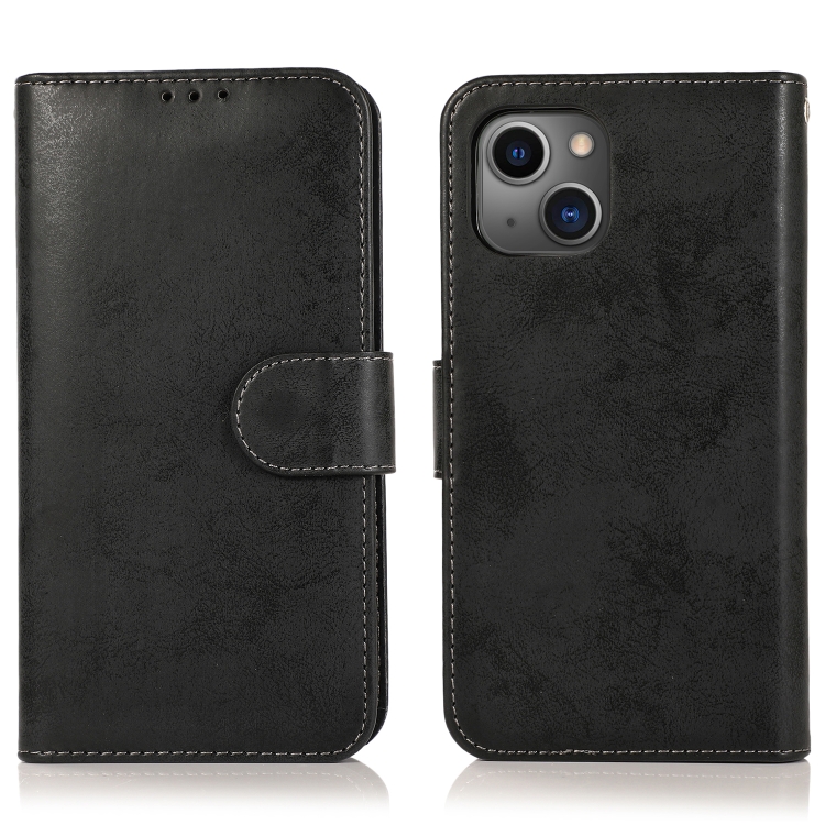 Funda para iPhone 13 Mini Retro 2 en 1 Cuero TPU + PU Tapa Horizontal Magnética Desmontable Soporte Ranuras Tarjetas Marco Fotos Billetera (Negro)