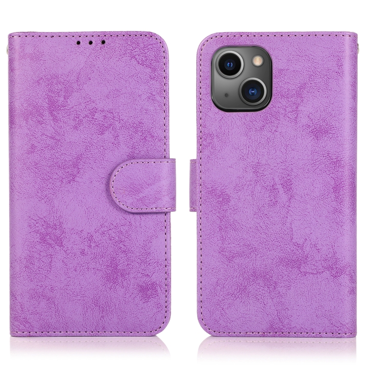 Funda para iPhone 13 Mini Retro 2 En 1 Cuero TPU + PU Tapa Horizontal Magnética Desmontable Soporte Ranuras Tarjetas Marco Fotos Billetera (Púrpura)