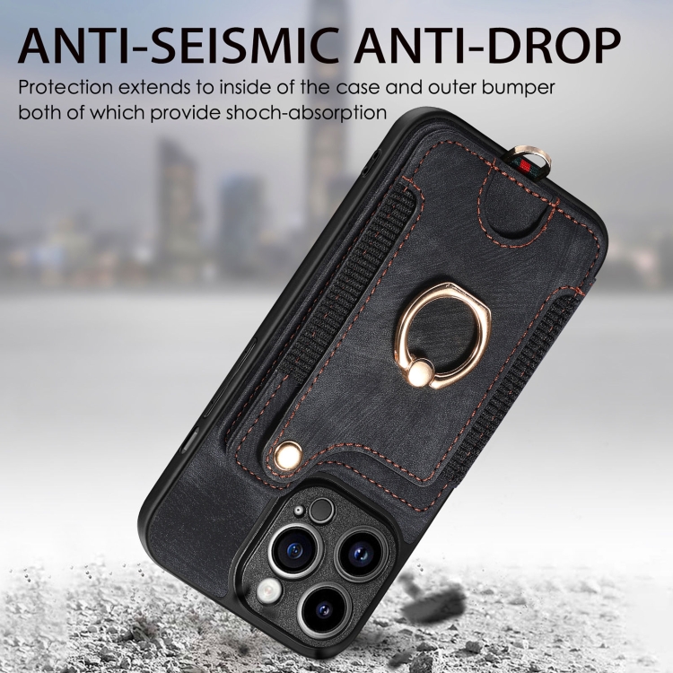 Funda para iPhone 13 Mini Retro Skin-Feel Ring Multi-Card Wallet (Negro)