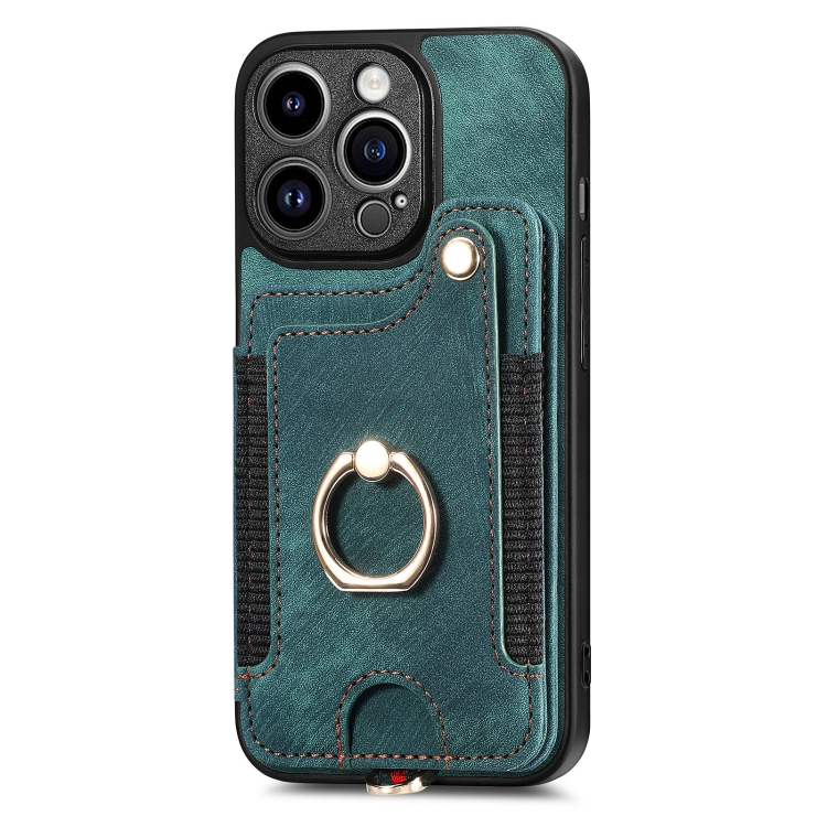 Funda para iPhone 13 Mini Retro Skin-Feel Ring Multi-Card Wallet (Verde)