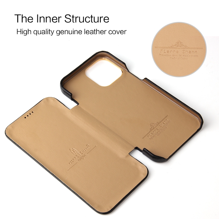 Funda para iPhone 13 Pro Fierre Shann Magnética de Cuero Genuino (Negro)