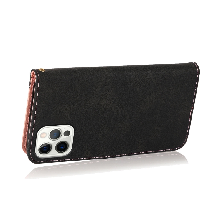 Funda de Teléfono iPhone 13 Pro Cuero con Costuras de Dos Colores (Oro Rosa Negro)