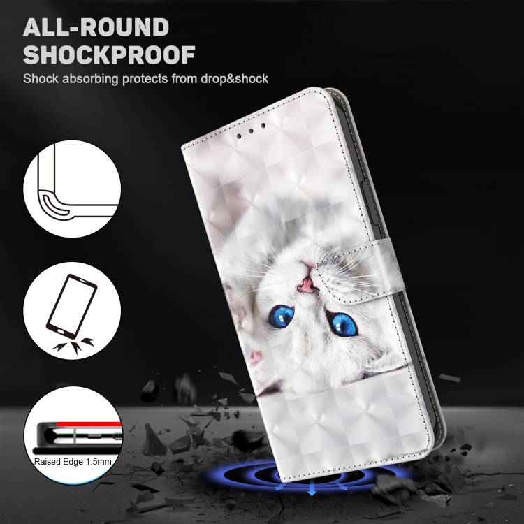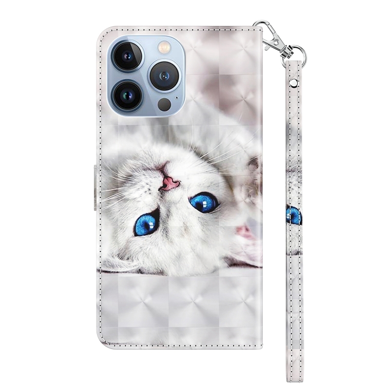 Funda de teléfono iPhone 13 Pro cuero pintado 3D gato blanco reflejo