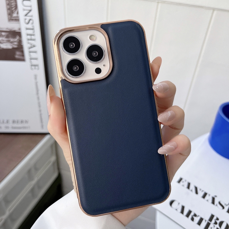 Funda de teléfono iPhone 13 Pro Xiaoya Galvanoplastia Nano Cuero Genuino (Azul)