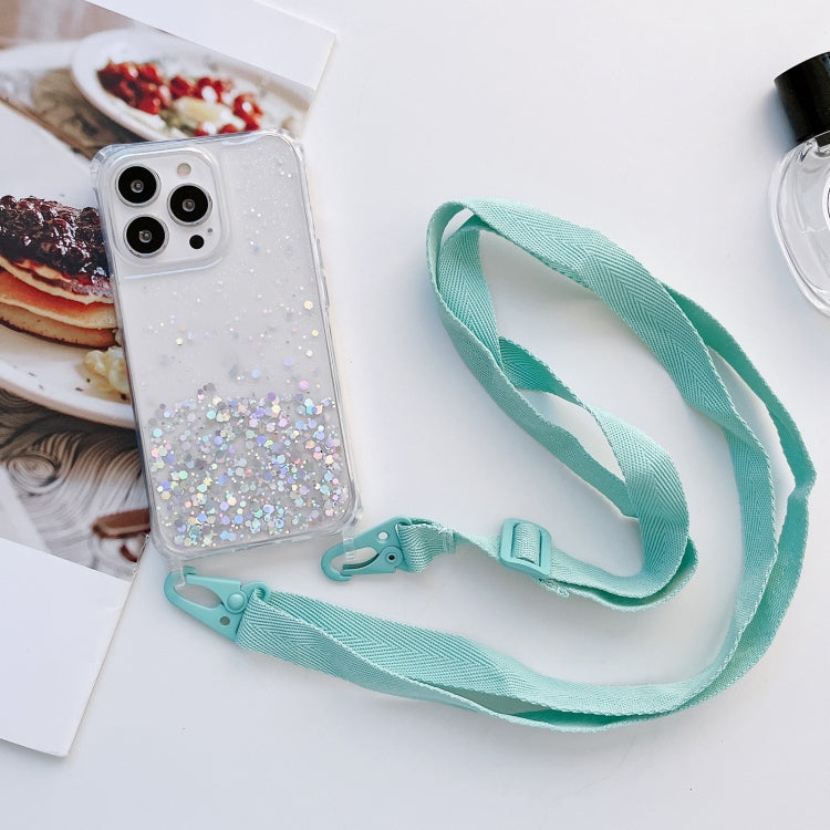 Funda para iPhone 13 Pro Lanyard Glitter Epoxy Clear Phone Case (Azul)