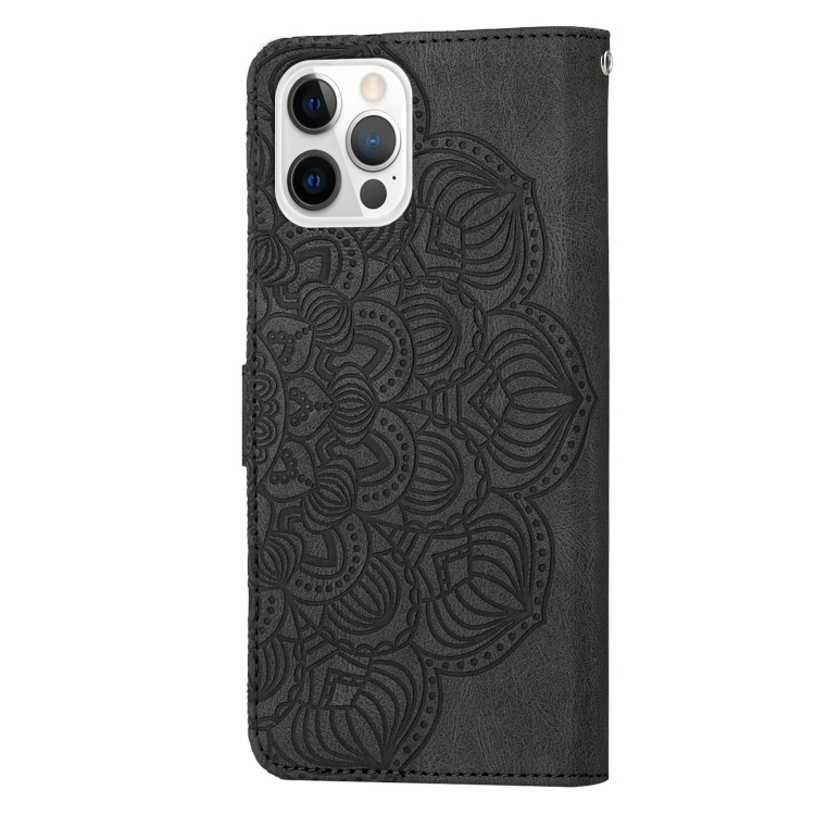 Funda para iPhone 13 Pro Mandala Cuero con Tapa en Relieve (Negro)