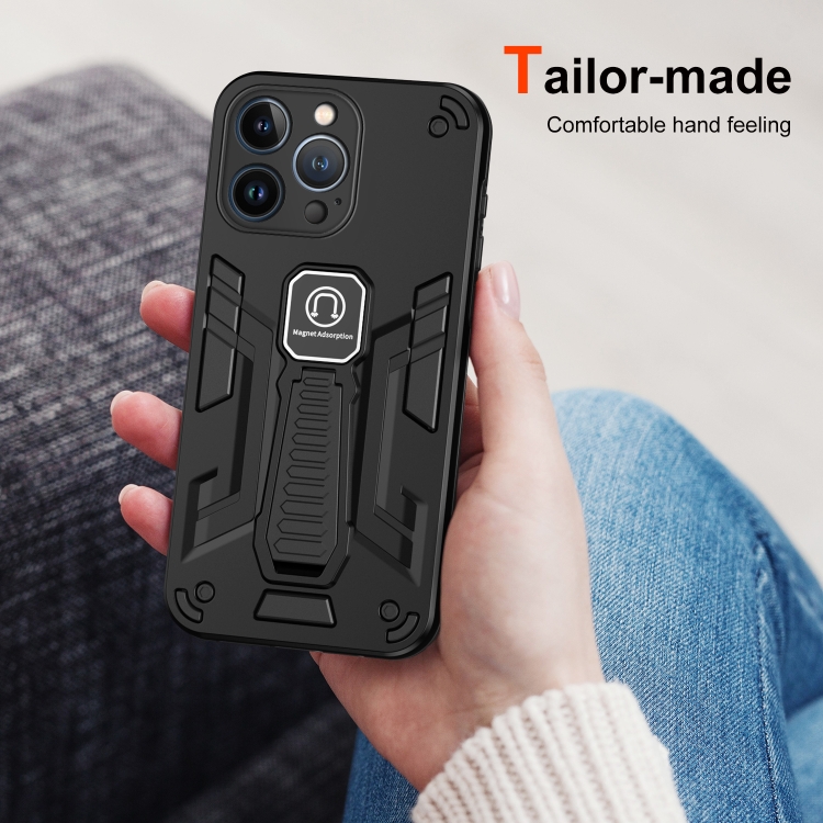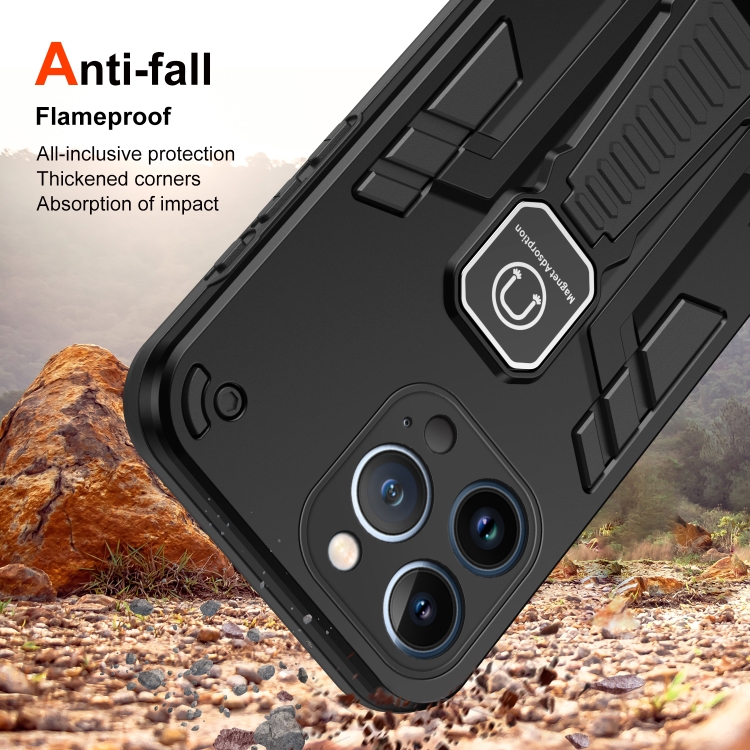 For iPhone 13 Pro Max 2 in 1 Shockproof Kickstand Phone Case (Black)