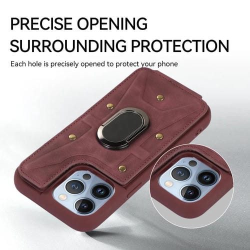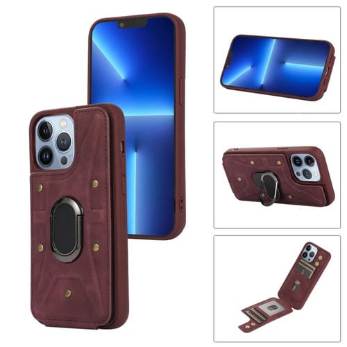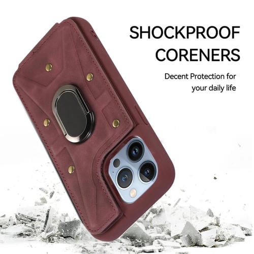 Funda Trasera Armor Ring Wallet para iPhone 13 Pro Max (Rojo Vino)