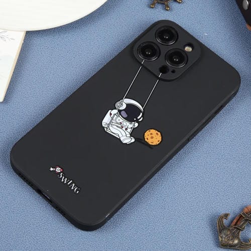 Funda para iPhone 13 Pro Max TPU Astronaut Swinging Pattern (Negro)