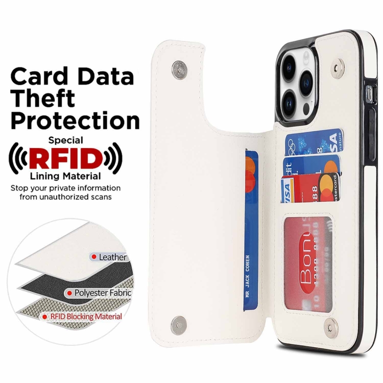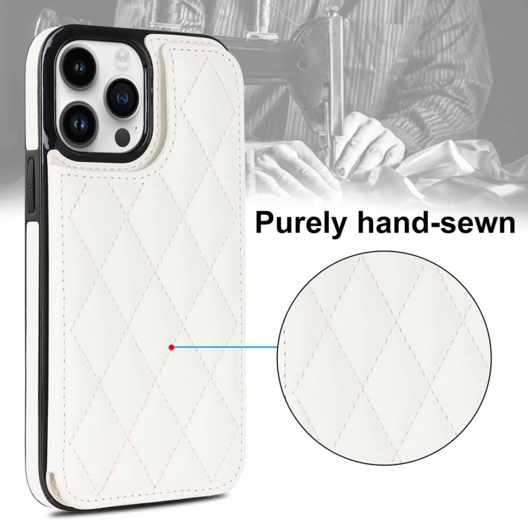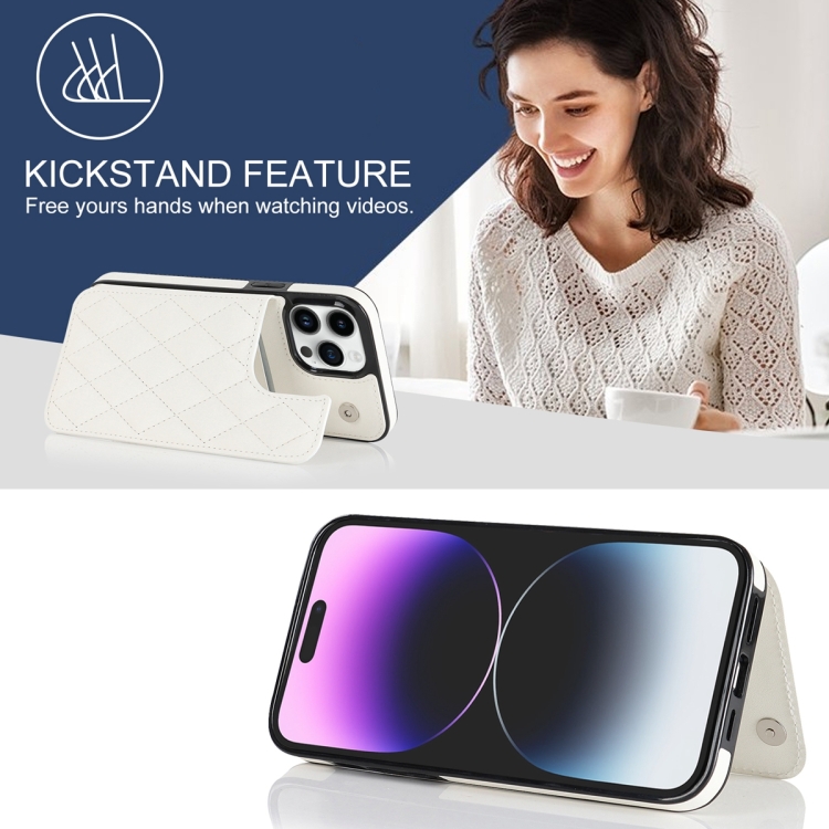 Estuche para Teléfono iPhone 13 Pro Max Cuero de Pu Rombal con Doble Hebilla (Blanco)