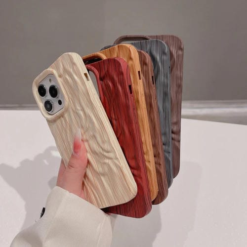 Estuche para Teléfono iPhone 13 Pro Max TPU Grano de Madera Plisado (Beige)