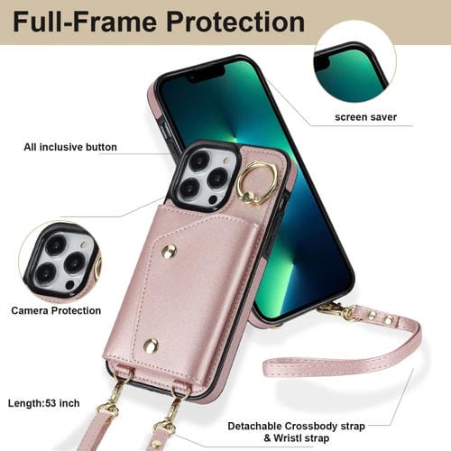 Funda para iPhone 13 Pro Max con Cremallera y Doble Cordón (Oro Rosa)
