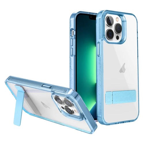 Funda para teléfono iPhone 13 Pro Max Transparente con soporte alto (Azul)