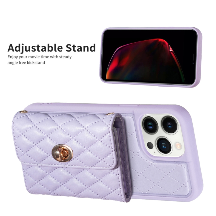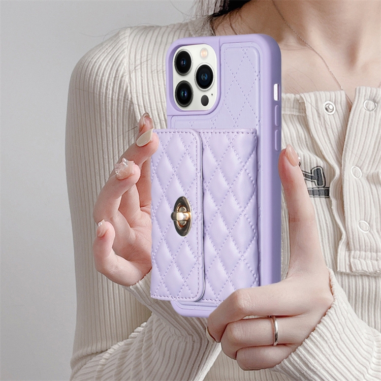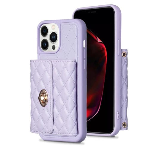 Funda Cartera para iPhone 13 Pro Max Rombico Horizontal Hebilla de Metal Cuero (Púrpura)