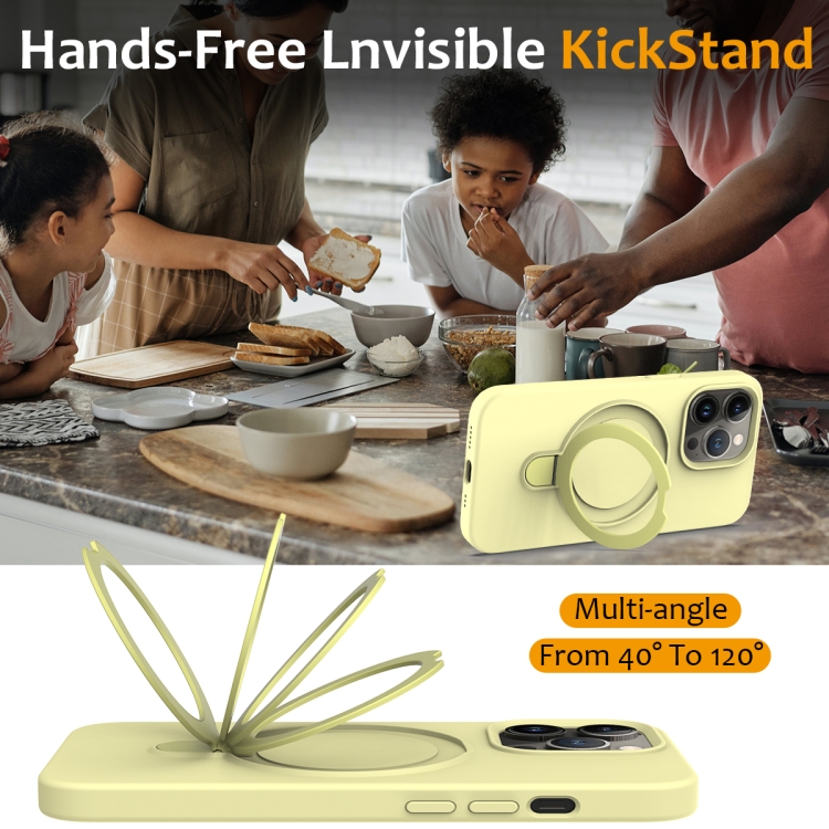 Funda para Teléfono iPhone 13 Pro Max Magsafe Silicona Líquida Magnética con Soporte para Anillo (Amarillo)