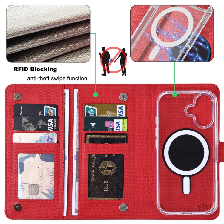 Funda de Cuero Vili Gha-C Series para iPhone 13 Pro Max con Tapa Magnética y RFID (Rojo)