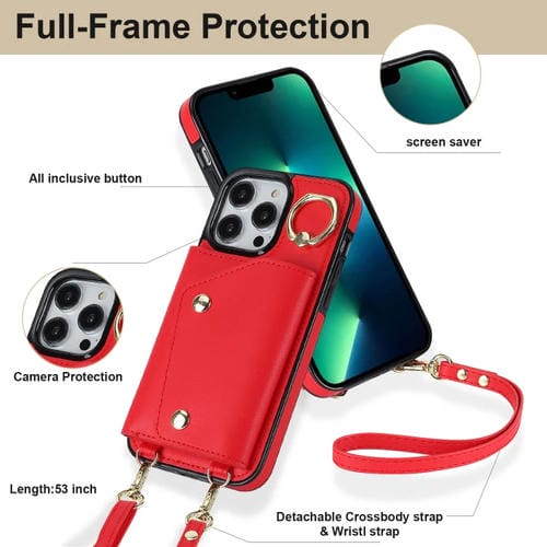 Funda para iPhone 13 Pro Max Zipper Card Bag con Doble Cordón (Rojo)