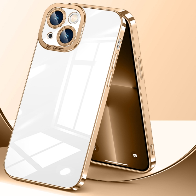 Estuche para Teléfono iPhone 14 Alta Transparencia Baño de Cristal (Dorado)