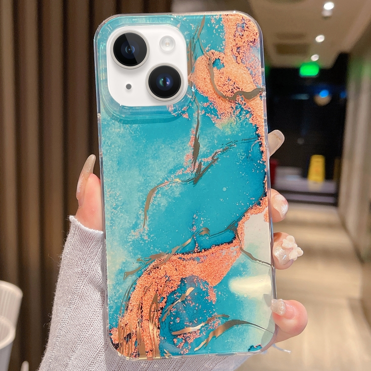 Estuche para teléfono iPhone 14 Mármol Esmaltado Color (Dorado Verde)
