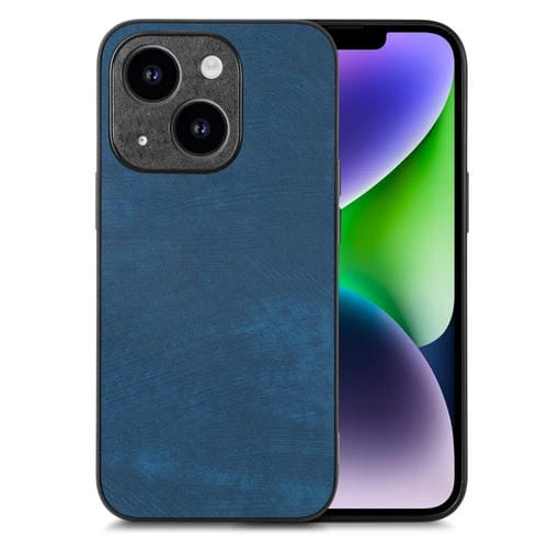 Funda de Teléfono para iPhone 14 con Contraportada de PC de Cuero Vintage (Azul)