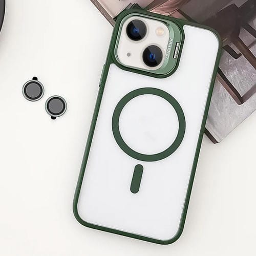 Funda para Teléfono iPhone 14 TPU Híbrido Acrílico Magsafe con Soporte y Película para Lentes (Verde)