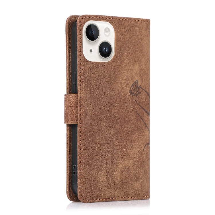 Funda para Teléfono iPhone 14 Cuero Relieve Mariposa Orquídea (Marrón)